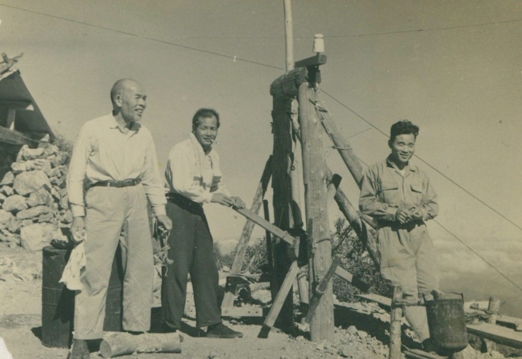剣山頂上ヒュッテは1955年、美馬郡木屋平村(現・美馬市)の新居熊太が開いた山小屋です。熊太は、地域に小さな水力発電所を作ったり、自転車で四国八十八ヶ所の巡礼をしたりするなど、無類の新しいもの好きかつ意欲的な人物でした。やがて剣山の頂上であめ湯(ザラメを溶かし生姜を効かせた飲み物)を売ることを思いつき、地元の大工らと小さな小屋建てました。それがヒュッテの始まり。熊太が65歳の時でした。ヒュッテはその後、2代目の綱男、3代目の智次らによる建物の改修を繰り返し、現在では約70人の宿泊者を収容できる施設になりました。